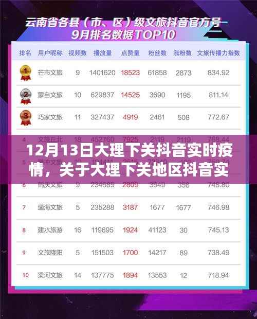 随着抖音等社交媒体平台的普及,越来越多的人通过抖音获取疫情信息,大理下关地区的抖音实时疫情信息反映了以下几个方面的特点: